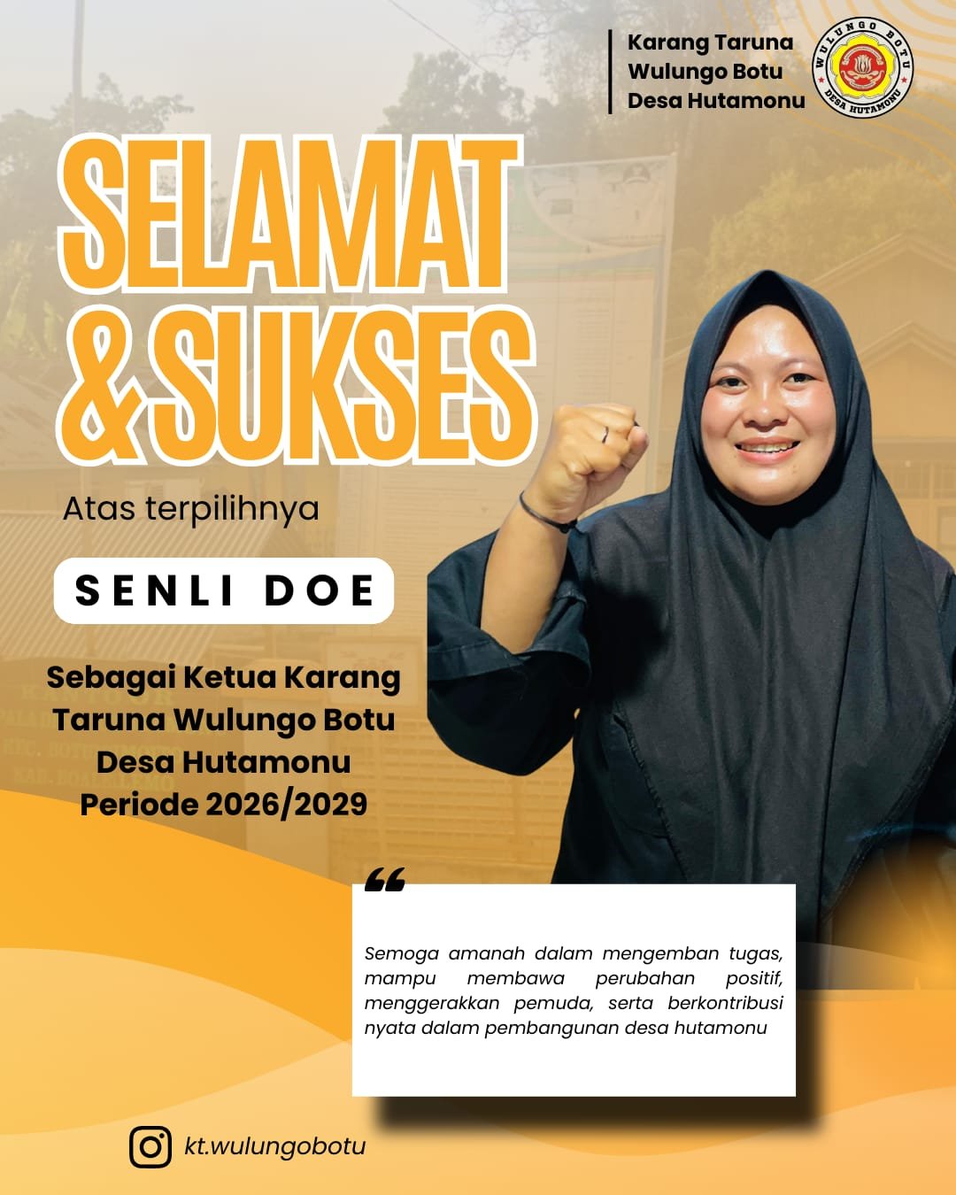 ETNIKMEDIA.ID, BOALEMO – Ketua Karang Taruna (KT) Desa Hutamonu terpilih, Senli Doe, menegaskan komitmennya untuk menjadikan karang taruna menjadi wadah yang inklusif, aktif, kreatif, dan mandiri dalam merangkul seluruh pemuda demi mewujudkan masyarakat yang sejahtera dan berdaya.