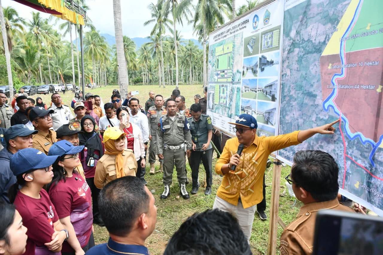 “Total luas area ini sekitar 113 hektare. Di dalamnya sudah direncanakan pembangunan Batalyon Boalemo dengan kebutuhan lahan sekitar 40 sampai 50 hektare, sementara untuk calon Sekolah Garuda disiapkan kurang lebih 30 hektare,” bebernya.